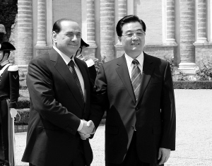 | 7月6日,国家主席胡锦涛在罗马会见意大利总理贝卢斯科尼。