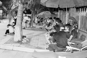 本报海口7月6日讯 (记者林伟)今天上午8时,海口市滨海九小前门庭若市,排队领取入学申请表的数百名家长排起了长队。而排队的家长中,有不少为求一表从4日晚便开始夜宿街头了。海口市教育局负责人表示,申请表发放按家长排队登记顺序先到先得。