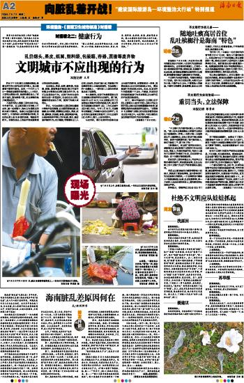 随地吐痰高居首位乱吐槟榔汁是海南“特色”