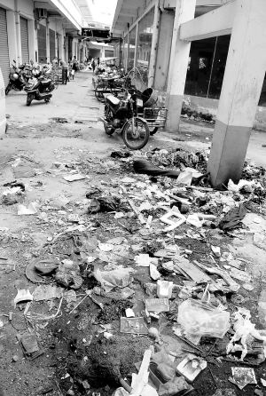 | ↑7月7日,东方市八所商贸市场内垃圾遍地,恶臭熏天。 本报记者 苏建强 摄 |