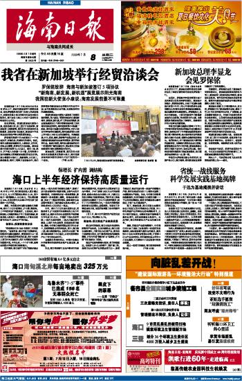 海南日报 头版 001 2009-07-081 2009年07月08日 星期三