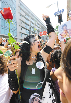 在迈克尔·杰克逊公众悼念活动于美国洛杉矶举行的同时,世界各地无缘亲临现场的歌迷们,也纷纷以各自的方式,与这位流行乐巨星依依惜别。 在英国首都伦敦,绝大多数人选择在家中收看英国广播公司的杰克逊公众悼念活动现场直播,但仍有一些歌迷冒雨前往O2体育馆,通过大屏幕收看现场直播。这里正是杰克逊原定于7月举行告别演唱会的表演场馆。 在德国首都柏林的O2世界娱乐中心,在法国首都巴黎香榭丽舍大街的酒吧,一些歌迷身穿黑衣、戴上杰克逊标志性的礼帽和白手套,聚集在一起收看悼念活动直播。 在瑞典首都斯德哥尔摩,歌迷们聚集在市内主要广场,点燃蜡烛,摆放鲜花,用重温杰克逊经典歌曲的方式追忆这位流行乐巨星。 在阿尔及利亚首都阿尔及尔,来自非洲各地的数百名歌者和舞者联袂演绎杰克逊早年的名曲,以示哀悼。 在日本首都东京著名唱片连锁店淘儿音乐城的一家店铺内,在斯台普斯中心的悼念活动开始前几小时,就已有百余名歌迷聚集在此,通过大屏幕观看杰克逊的音乐录影带。杰克逊生前曾经两度到访这家店铺,并在此留下自己的手印。 在菲律宾,著名午间综艺电视节目Eat Bulaga宣布,将于8日举办以杰克逊名字命名的舞蹈大赛,以纪念这位创造了震撼世人的“月球漫步”舞步的巨星。 记者 岳玉苓 (据新华社北京7月8日电) |
