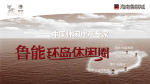 2009年,海南鲁能城整合海南优势资源,再次剑指高端,启动“鲁能环岛休闲圈”战略,定义高端休闲地产标准。作为鲁能各个作业链条整合的升级版,海南鲁能城将引入行业顶端的产品打造标准,以生态环保、技术领先与休闲度假的人文归属为基本理念,将休闲地产在满足基本功能需求的基础上,提升到满足心理需求的高度。