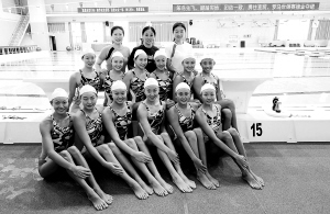 7月9日,国家花样游泳队在国家体育总局游泳训练馆进行公开课训练,备战即将于7月17日至8月2日在罗马举行的第十三届世界游泳锦标赛。图为国家花样游泳队队员和教练员合影。 新华社发