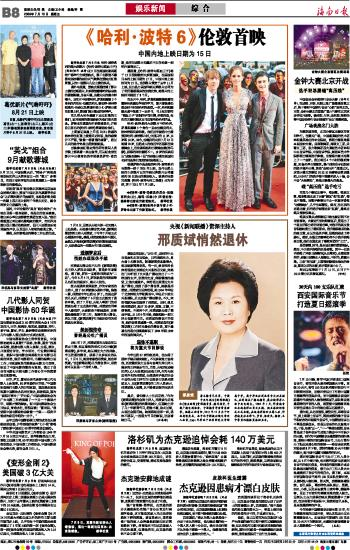 海南日报 娱乐新闻 016 2009-07-101 2009年07月10日 星期五