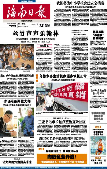 海南日报 头版 001 2009-07-121 2009年07月12日 星期日
