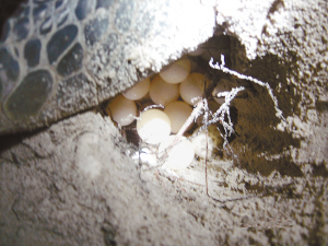 在研究海龟的过程中,陈定兴教授将无线电发射机固定在海龟身上,以确定海龟的行踪,并进一步了解它们的迁徙路线。“每年4月-10月,性成熟的雌海龟回到岸上产卵,而雄海龟终身不再上岸。”陈定兴根据多年观察记录的成果告诉记者,海龟的繁殖能力很强,一只性成熟的雌性海龟一年可产4、5次卵,绿海龟一窝卵在30-160枚之间,而玳瑁每窝可产卵200多枚。