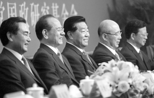| 7月12日,第五届两岸经贸文化论坛在湖南长沙落下帷幕。中共中央政治局常委、全国政协主席贾庆林和中国国民党主席吴伯雄出席闭幕式。 新华社发 |