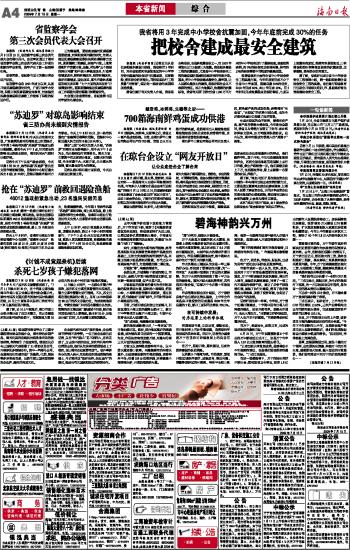 海南日报 本省新闻 004 2009-07-131 2009年07月13日 星期一