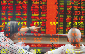 | 十五日,两位股民在广州一家证券营业部内讨论大盘。 新华社发 |