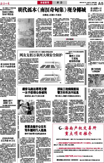 海南日报 本省新闻 005 2009-07-161 2009年07月16日 星期四
