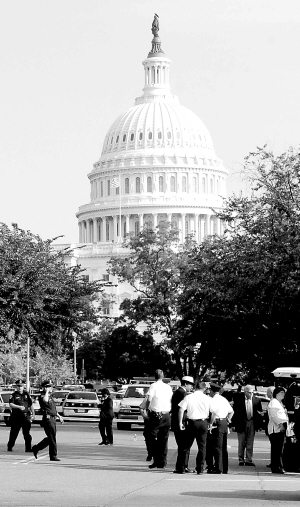7月15日,警察与调查人员在美国首都华盛顿国会山附近一枪击案现场调查取证。美警方证实,当天国会山附近发生一起枪击案,一名男子在被警察追逐的过程中中弹身亡。 新华社/路透