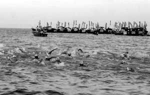| 2001年横渡琼州海峡大奖赛的场景。 本报记者 王军 摄 |