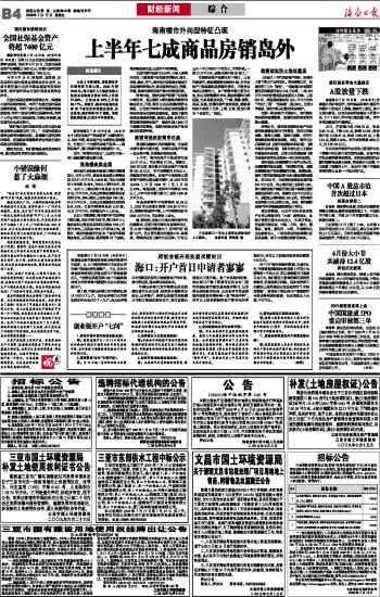 海南日报 财经新闻 012 2009-07-171 2009年07月17日 星期五