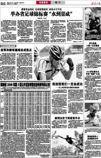 海南日报 体育新闻 014 2009-07-171 2009年07月17日 星期五