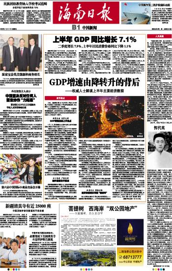 海南日报 中国新闻 009 2009-07-171 2009年07月17日 星期五