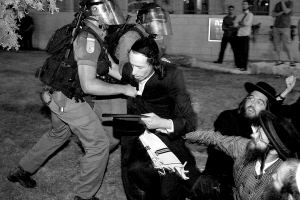 7月16日,一些极端正统派犹太教徒在耶路撒冷与以色列警察发生冲突。圣城耶路撒冷发生的骚乱16日进入第三天,极端正统派犹太教徒当天与警察发生冲突并袭击政府机构。这起骚乱直接原因是以色列警方以虐待儿童为名逮捕犹太教极端正统派一名妇女,其深层背景是耶城内世俗与宗教之争。 新华社/法新