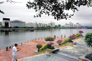 干净的三亚河沿岸,市民在享受休闲时光。 本报记者 程范淦 摄