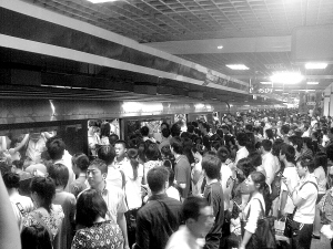 造成2条线路停运 7月17日8时25分左右,在北京地铁一号线南礼士路站有人跳轨自杀,当场死亡。造成地铁一号线和八通线全线停运。 新华社记者 崔月平 摄