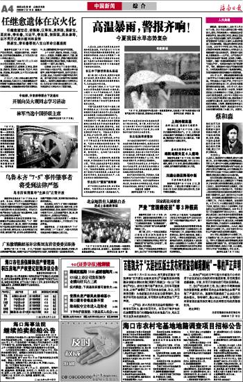 海南日报 中国新闻 004 2009-07-181 2009年07月18日 星期六