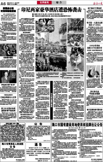 海南日报 世界新闻 006 2009-07-181 2009年07月18日 星期六