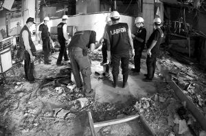 | 7月18日,调查人员在印度尼西亚雅加达遭爆炸袭击的万豪酒店进行调查。 新华社/路透 |