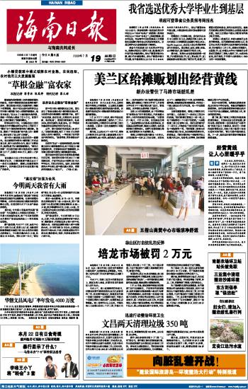 海南日报 头版 001 2009-07-191 2009年07月19日 星期日