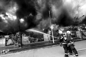 7月19日,在温州市一制笔厂仓库火灾现场,消防官兵全力灭火。 当日,浙江省温州市一制笔厂仓库发生火灾。截至记者发稿时,当地消防等部门还在火灾现场进行扑救,人员伤亡及起火原因等有关情况正在调查中。 新华社发