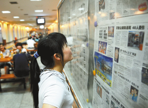 7月20日,一位学生正在防空洞内看报纸。 炎炎夏日,由重庆市人防办提供的全市99个人防工程纳凉点,成为重庆人避暑的好地方。其中部分纳凉点配有电视、阅报栏、免费茶水等。 新华社发