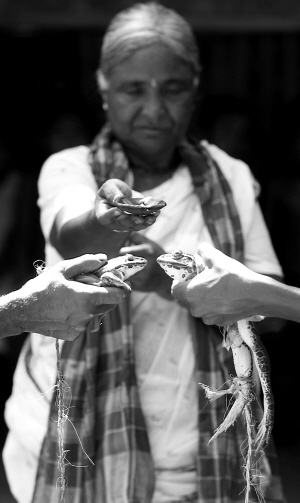 7月19日,在印度城市西里古里以东约85公里的一处村庄,村民举行仪式为两只青蛙“完婚”。为青蛙举行婚礼是当地习俗,以求风调雨顺、五谷丰登。 新华社/路透