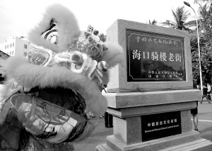 | 舞狮子庆祝“海口骑楼老街”揭牌。