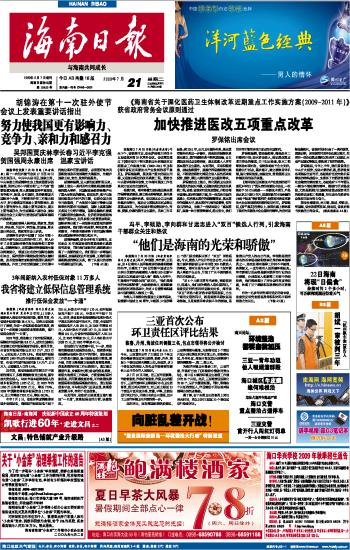海南日报 头版 001 2009-07-211 2009年07月21日 星期二