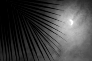 ↑7月22日上午9时20分,在海口市南海大道拍到的日偏食景观。 本报记者 王凯 摄