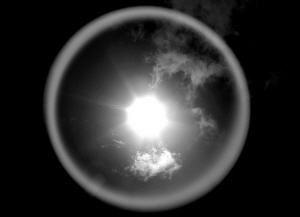 ↑7月22日上午9时41分,在琼海市嘉积镇,记者拍摄到的日偏食产生的光晕现象。 本报记者 张杰 摄