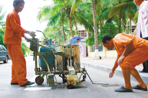 连日来,三亚市交警部门组织施工人员,对该市河西、河东两片区共8条主要道路,重新划定停车泊位。解放路将新增小车停放泊位1296个,摩托车停放泊位360个,将大大缓解繁华街道车辆乱停乱放问题。 据了解,停车泊位重新划定工作将在近日完成。届时,三亚市小车停车泊位将达2326个,摩托车停车位达2440个,分别比现在新增1330个和2000个。 特约记者 孙清 摄影报道
