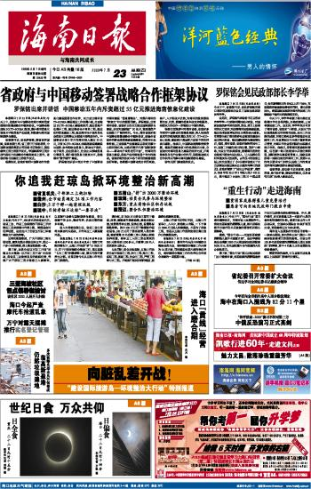 海南日报 头版 001 2009-07-231 2009年07月23日 星期四