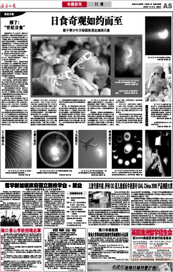 海南日报 专题新闻日 食 005 2009-07-231 2009年07月23日 星期四