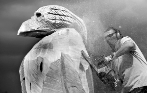 7月25日,木雕技师赖克·曾格在德国东部一小镇举行的国际木雕比赛上用电锯制作作品。 新华社/法新