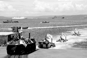7月26日,在俄罗斯远东海滨城市符拉迪沃斯托克市的俄罗斯太平洋舰队基地举行的“海军日”庆祝活动上,俄海军队员参加水陆两栖车登陆表演。每年7月的最后一个星期日是俄罗斯的“海军日”。 新华社发