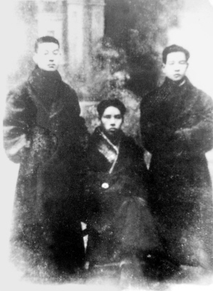 | 1922年,李硕勋(中)赴北京弘达学院求学前与长弟李仲焘(左)、二兄仲耘(右)的合影。 |