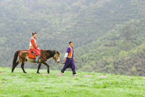 远处一位藏族姑娘牵着一匹白马在绿油油的草甸牧养,藏族姑娘、白马、草地……这些简单的音符组成淡淡的旋律,这种不带任何杂质的修饰让人心旷神怡。