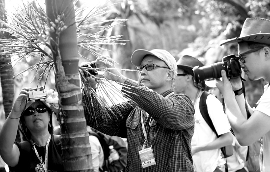7月24日下午,来自香港的生态旅游考察团成员在海口火山口地质公园附近的美社村进行考察。 本报记者 张杰 摄