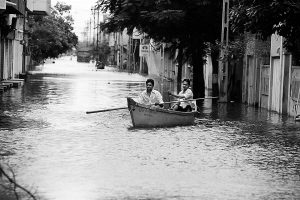 7月27日,在印度西部古吉拉特邦艾哈迈达巴德以西400公里的博尔本德尔,人们划着小船驶过洪水淹没的街道。深受洪水侵袭的博尔本德尔、朱纳格特以及贾姆讷格尔地区的超过3000户居民已经转移到安全地区。 新华社/路透