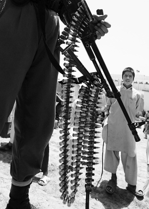 7月27日,一名阿富汗男孩在首都喀布尔市郊看着警察巡逻。阿富汗总统府发言人赫拉维当日证实,阿政府日前已与北部巴德吉斯省巴拉米尔加卜区的塔利班武装达成停火协议,以保证将于8月20日开始的大选投票安全。这是2001年塔利班政权倒台以来,阿政府与塔利班武装首次达成的正式停火协议。 新华社记者 扎比 摄