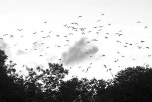 海口琼山区大坡镇田心村是闻名遐迩的“鹭鸟天堂”,该村开展文明生态村建设两年来,因地制宜突出生态保护、加强乡土文化建设、增加农民收入为目标,大力发展“农家游”乡村旅游业,田心村面貌发生了巨变。 图为7月23日黄昏,栖息田心村的上万只鹭鸟返回村林,壮观之极。 本报记者 苏建强 摄影报道
