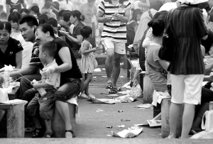 7月初,三亚市渔港街,一些市民吃完早餐后,将塑料碗随手乱扔。