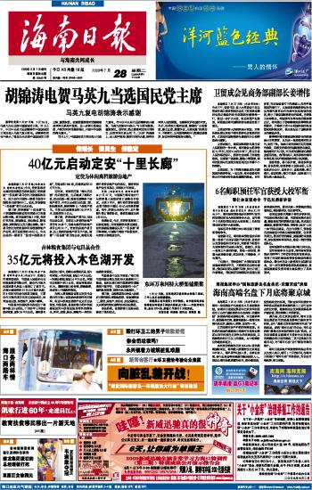 海南日报 头版 001 2009-07-281 2009年07月28日 星期二