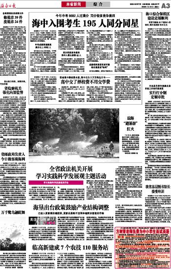 海南日报 本省新闻 003 2009-07-281 2009年07月28日 星期二