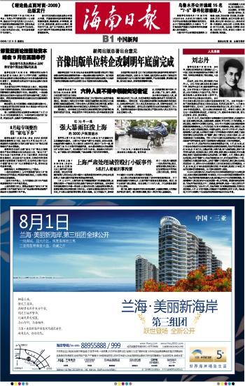 海南日报报业集团旗下媒体: 海南日报 | 南国都市报 | 南海网 | 南岛晚报 | 证券导报 加入收藏 | 设为首页