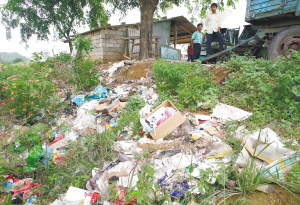 | 七月三十日,昌江石碌镇太坡十字路口,垃圾成堆。